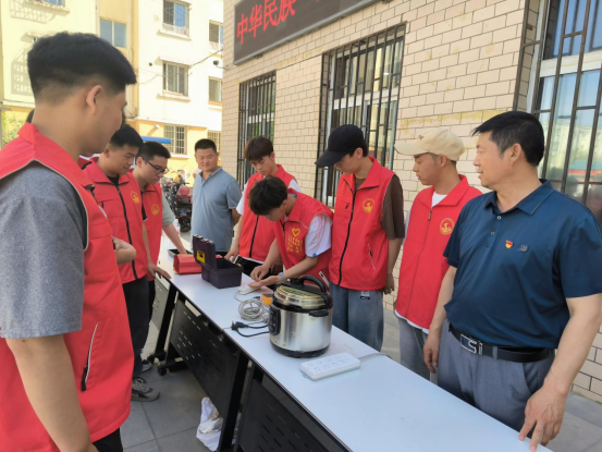 隨后由黨支部推選的兩名機(jī)電專業(yè)學(xué)生,為居民朋友講解使用家電時(shí)遇到故障的簡單處理辦法,家電保養(yǎng)基礎(chǔ)知識等。同時(shí),為居民免費(fèi)檢測了熱水壺、電壓力鍋等小家電的故障問題。