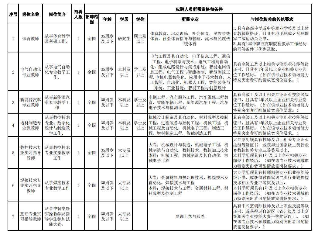 按照《石嘴山工貿職業(yè)技術學院2024年編制外自主招聘教師公告》要求,根據(jù)實際資格審查合格人數(shù)情況,經(jīng)石嘴山工貿職業(yè)技術學院自主招聘工作領導小組會議研究,現(xiàn)將變更崗位資格條件及延長報名時間公告如下: