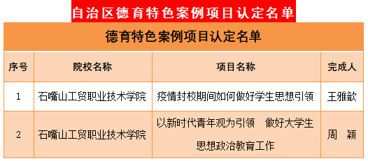 近日,自治區(qū)教育廳對(duì)2022年全區(qū)職業(yè)教育提質(zhì)培優(yōu)行動(dòng)計(jì)劃項(xiàng)目認(rèn)定結(jié)果進(jìn)行公示,石嘴山工貿(mào)職業(yè)技術(shù)學(xué)院斬獲19個(gè)項(xiàng)目,喜報(bào)連連。