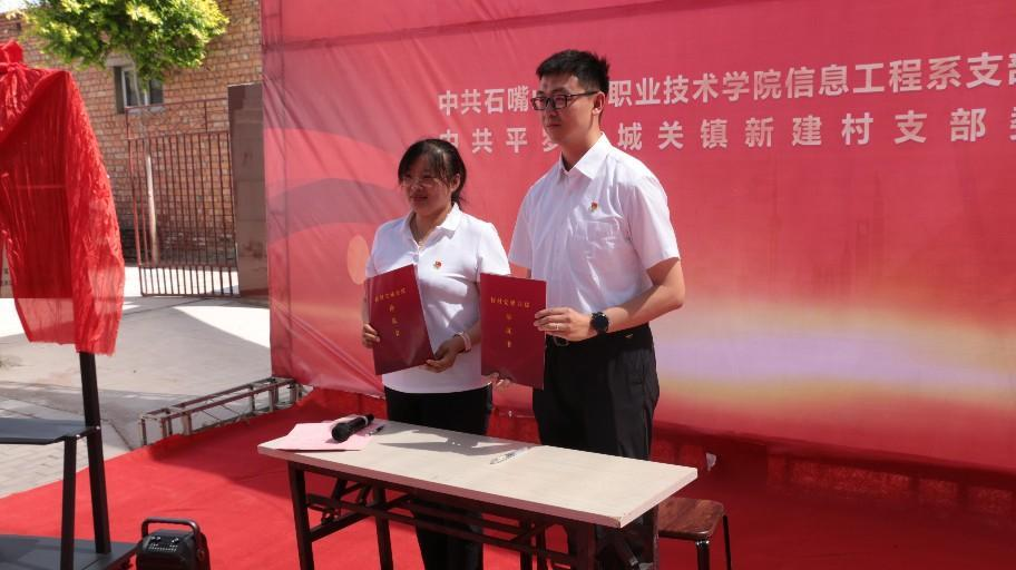 為推動學習貫徹習近平新時代中國特色社會主義思想主題教育做實功見實效,提升黨建引領鄉(xiāng)村振興新動力,石嘴山工貿(mào)職業(yè)技術學院信息工程系支部委員會同平羅縣城關鎮(zhèn)新建村支部委員會結成校村黨建共建關系。6月20日,共建啟動儀式在新建村舉辦。
