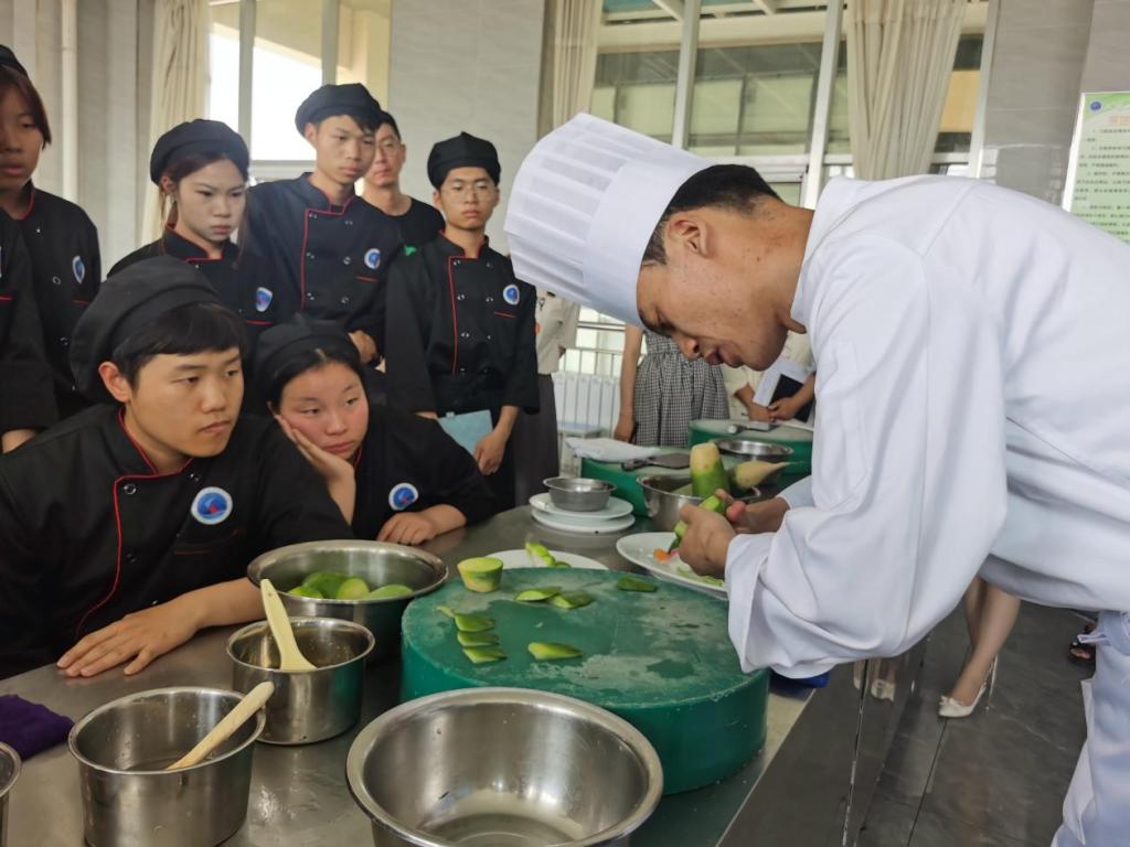 烹飪專業(yè)教師李芃的實訓課程《冷拼荷葉的制作》,以制作山水類冷拼作品《荷塘小景》中的“荷葉”為內(nèi)容,旨在指導學生掌握冷拼荷葉的底托、葉面等制作的關(guān)鍵動作要領(lǐng)及注意事項。演示規(guī)范、講解細致、通俗易懂,教學環(huán)節(jié)完整,成功的上了一節(jié)典型的做中教、做中學、教學合一的公開課。