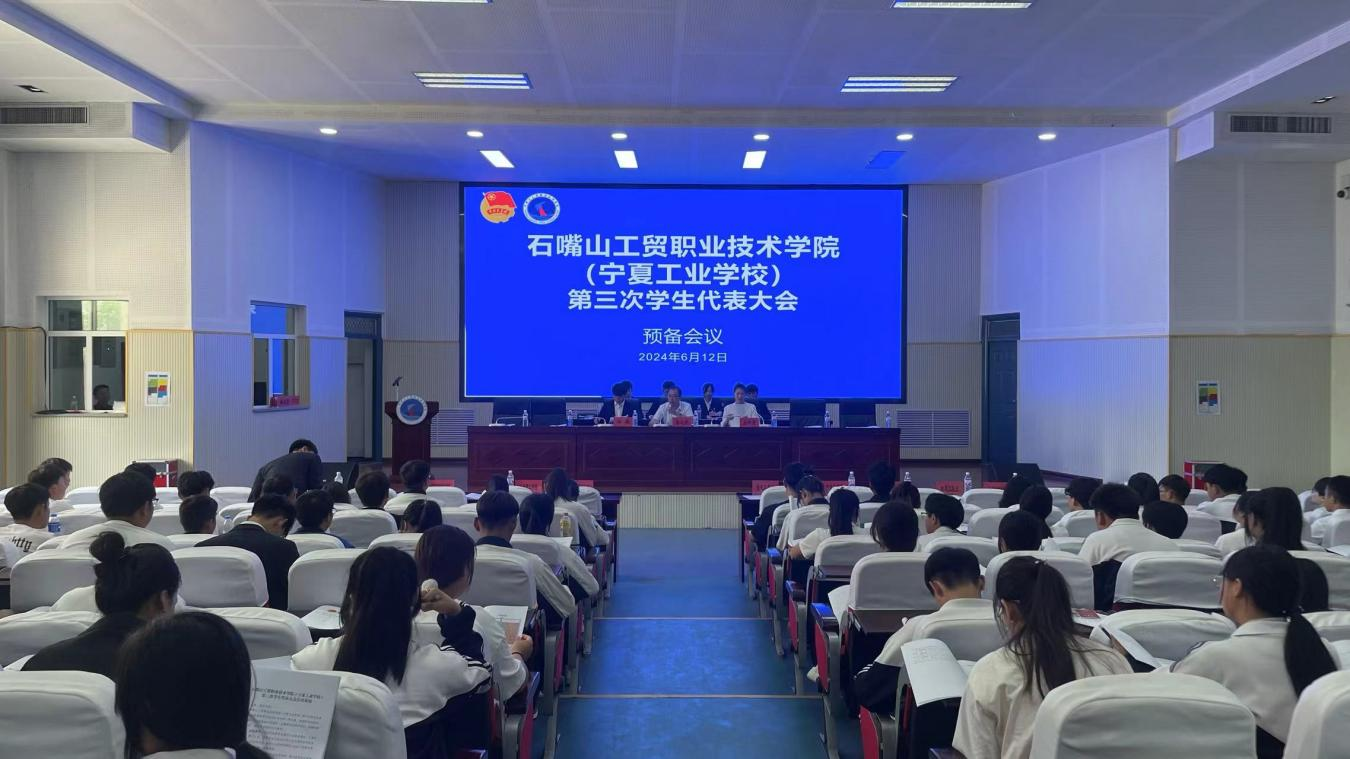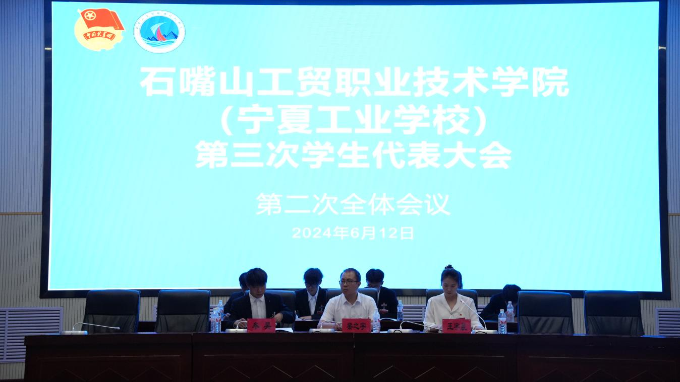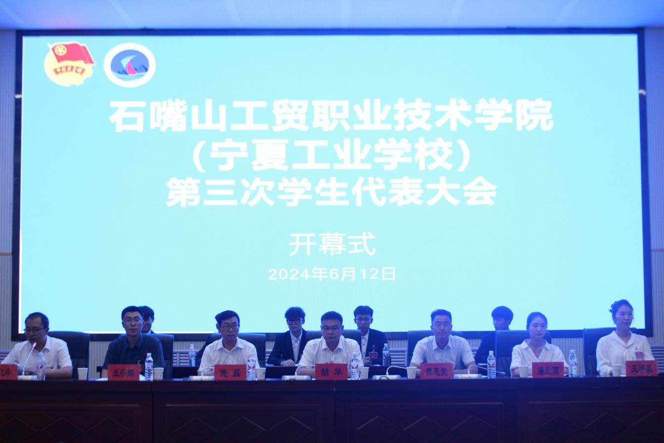 6月12日下午,石嘴山工貿(mào)職業(yè)技術學院(寧夏工業(yè)學校)第三次學生代表大會在9號樓報告廳召開。學院黨委委員、副院長韓恩寬、團市委副書記胡華、石嘴山市學聯(lián)主席潘思雨、黨建工作處副處長、學生處負責人、各院系黨支部書記、團委書記和142名學生代表參加大會開幕式。開幕式由學院團委書記梁之宇主持。