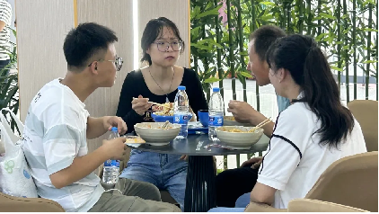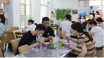 豐富的美食、熱情的態(tài)度,校園的食堂里冒著熱氣,在微涼的今天,溫暖著家長和學(xué)生們的身體,在每一個餐桌旁,不時地傳來聲聲笑語。飯里有家的味道,桌上有父母關(guān)懷囑咐的話語。