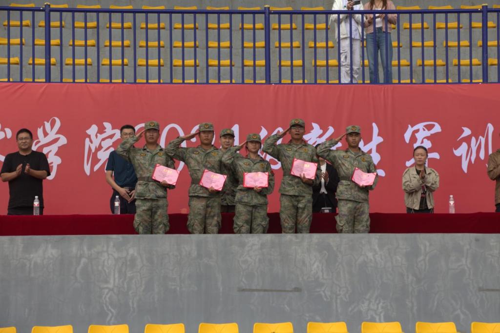 匯報軍訓成果后,學生處負責人王宇輝宣讀《關于表彰2024年軍訓“優(yōu)秀教官”“優(yōu)秀學員”的決定》,授予劉天強等5名教官“優(yōu)秀教官”榮譽稱號,授予趙瀚哲等30名同學“優(yōu)秀學員”榮譽稱號。鼓勵受到表彰的個人珍惜榮譽,再接再厲。勉勵同學們在今后的學習和生活中要以受表彰的先進典型為榜樣,汲取榜樣力量,砥礪奮進新征程。