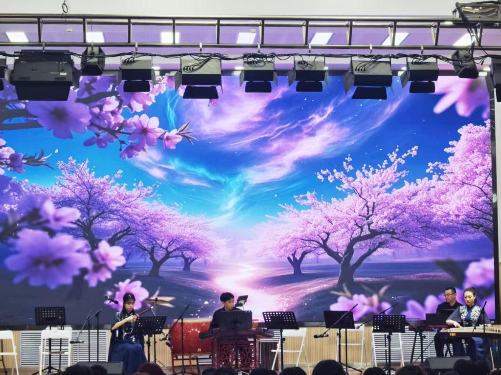 演出現(xiàn)場氣氛熱烈,區(qū)內知名音樂家與文藝工作者帶來精彩節(jié)目。二胡、古箏、揚琴、竹笛等民族樂器輪番登場,藝術家們以精湛技藝演繹經典旋律,或激昂高亢,或婉轉悠揚,盡顯民族音樂的獨特韻味。師生沉浸式感受傳統(tǒng)文化魅力,現(xiàn)場掌聲不斷。