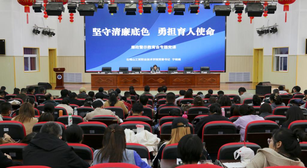 為深入學(xué)習(xí)貫徹習(xí)近平總書記關(guān)于加強(qiáng)黨的作風(fēng)建設(shè)重要論述精神,一以貫之推進(jìn)全面從嚴(yán)治黨,切實(shí)增強(qiáng)全院教職工廉潔從教、依法履職的思想自覺(jué)和行動(dòng)自覺(jué),3月27日,石嘴山工貿(mào)職業(yè)技術(shù)學(xué)院黨委書記寧曉娟以“堅(jiān)守清廉底色 勇?lián)耸姑睘橹黝},為全院教職工講授廉政專題黨課。