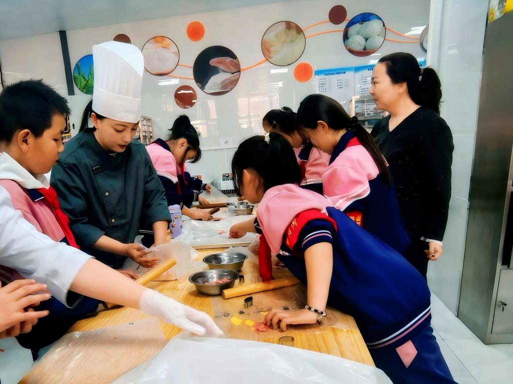 在生命健康星火館,同學(xué)們探索人體奧秘,了解身體結(jié)構(gòu)與健康常識(shí),感受生命科學(xué)魅力;在智能制造車間,自動(dòng)化生產(chǎn)線與工業(yè)機(jī)器人精準(zhǔn)作業(yè),讓同學(xué)們初步感知工業(yè)自動(dòng)化技術(shù)與相關(guān)職業(yè)內(nèi)涵;在化學(xué)實(shí)驗(yàn)室星火館,老師結(jié)合化工生產(chǎn)模型講解安全知識(shí),演示心肺復(fù)蘇、應(yīng)急防護(hù)等實(shí)操技能,將生產(chǎn)規(guī)范與急救知識(shí)融為一體,提升學(xué)生安全素養(yǎng);在食品檢驗(yàn)星火館,大家動(dòng)手參與小餅干制作,體驗(yàn)食品加工與質(zhì)量檢測(cè)基本流程,感受食品專業(yè)的實(shí)用性與趣味性。