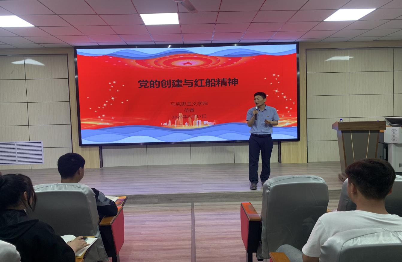 開(kāi)班儀式結(jié)束后,馬克思主義學(xué)院院長(zhǎng)范青以《黨的創(chuàng)建與紅船精神》為主題,為全體參訓(xùn)學(xué)員進(jìn)行授課。他圍繞中國(guó)共產(chǎn)黨的創(chuàng)建歷史、紅船精神的精神內(nèi)涵以及五四運(yùn)動(dòng)的意義這三個(gè)問(wèn)題,帶領(lǐng)全體參訓(xùn)學(xué)員回顧了黨的建設(shè)歷程、黨的偉大成就,教育引導(dǎo)全員牢記黨的歷史,自覺(jué)繼承和發(fā)揚(yáng)紅船精神,為中華民族偉大復(fù)興而努力奮斗。