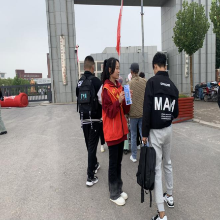 志愿者在校門口引導(dǎo)學(xué)生關(guān)注“智慧校園”公眾號(hào)