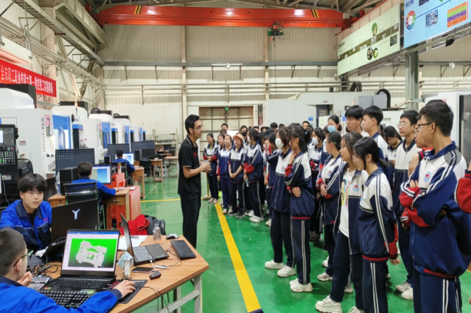 學院充分利用職教資源,結合中小學生認知特點,精心設計職業(yè)情境體驗。在學院智能制造中心,師生們看到了機械產品的全智能制造流程,綠色的現代化生產線展示了科技與環(huán)保的完美