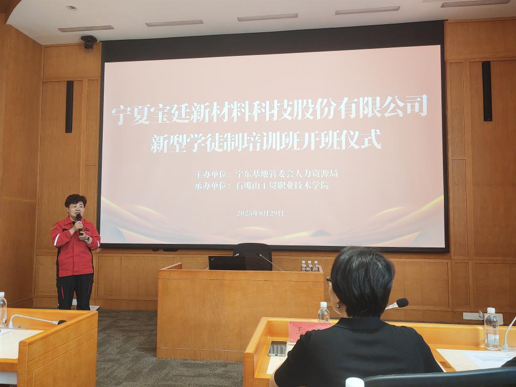 為深化產(chǎn)教融合、推進(jìn)校企協(xié)同育人,助力區(qū)域產(chǎn)業(yè)高質(zhì)量發(fā)展,同時(shí)積極拓展培訓(xùn)市場(chǎng)、打造特色技能培訓(xùn)品牌,2025年8月29日上午,石嘴山工貿(mào)職業(yè)技術(shù)學(xué)院副院長(zhǎng)王敏帶隊(duì)赴寧夏寶廷新材料科技股份有限公司多功能廳,參加該企業(yè)新型學(xué)徒制開(kāi)班儀式,與寧東基地管委會(huì)相關(guān)領(lǐng)導(dǎo)、企業(yè)負(fù)責(zé)人及70名學(xué)徒代表共同開(kāi)啟技能人才培養(yǎng)新征程,這也是學(xué)院拓展企業(yè)培訓(xùn)市場(chǎng)的又一重要實(shí)踐成果。