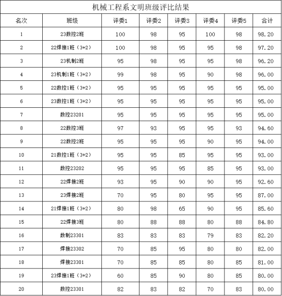 此次活動(dòng),中高職6個(gè)專業(yè)共計(jì)20個(gè)班參與評(píng)選。主要從班級(jí)視窗布置、衛(wèi)生角的設(shè)置擺放及班級(jí)整體衛(wèi)生三個(gè)方面開(kāi)展,旨在以評(píng)促改,提高同學(xué)的環(huán)境衛(wèi)生意識(shí),締造美麗教室,展示班級(jí)風(fēng)采,彰顯班級(jí)特色,營(yíng)造文化氛圍,使教室真正成為學(xué)生的學(xué)習(xí)樂(lè)園和幸福家園?;顒?dòng)前,機(jī)械工程系通過(guò)制定詳細(xì)的評(píng)比方案及評(píng)分表,利用晨、午檢細(xì)致安排活動(dòng)內(nèi)容及要求,教育引導(dǎo)各班級(jí)學(xué)生積極參與到此次評(píng)選活動(dòng)中來(lái),養(yǎng)成良好的衛(wèi)生習(xí)慣,提高衛(wèi)生意識(shí),創(chuàng)造干凈、整潔、舒適的學(xué)習(xí)環(huán)境;活動(dòng)中,各班級(jí)積極投入,展示了他們對(duì)班級(jí)衛(wèi)生及文化建設(shè)的重視和努力。機(jī)械工程系副主任宋福亮帶領(lǐng)未承擔(dān)班主任工作的老師組成評(píng)委團(tuán),按照評(píng)分細(xì)則對(duì)各班級(jí)文化建設(shè)情況逐一檢查并完成評(píng)比打分。