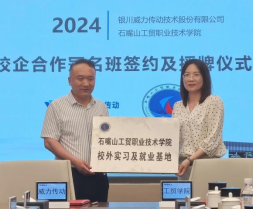 6月20日,石嘴山工貿(mào)職業(yè)技術(shù)學(xué)院與銀川威力傳動(dòng)技術(shù)股份有限公司校外實(shí)習(xí)及就業(yè)基地授牌儀式暨校企合作冠名班簽約儀式在威力傳動(dòng)文萃街廠區(qū)A101會(huì)議室舉行。學(xué)院副院長(zhǎng)侯蓉、招生就業(yè)處副主任張長(zhǎng)青、銀川威力傳動(dòng)技術(shù)股份有限公司副總經(jīng)理常曉薇、人力資源總監(jiān)陳永寧、學(xué)院機(jī)械工程系主任蘭晏文、副主任宋福亮、數(shù)控團(tuán)隊(duì)教師和32名數(shù)控專業(yè)學(xué)生參加儀式。