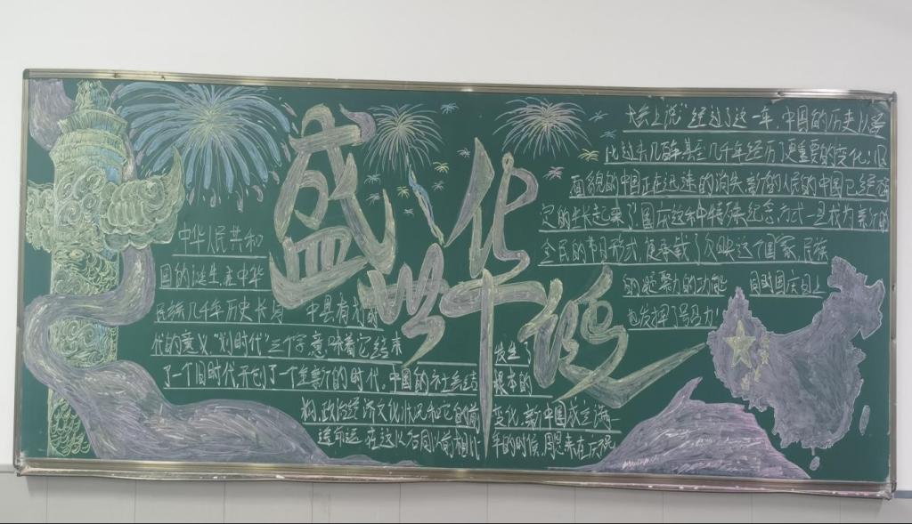 用愛繪制最美祖國(guó)。各班迅速行動(dòng)起來(lái),充分發(fā)揮個(gè)人特長(zhǎng),結(jié)合集體智慧,利用課余時(shí)間認(rèn)真設(shè)計(jì)、安排,創(chuàng)作出一塊塊主題鮮明、設(shè)計(jì)美觀、圖文并茂、書寫工整的黑板報(bào)。雖然電氣工程系絕大多數(shù)都是男生,并不擅長(zhǎng)繪制黑板報(bào),但是他們依舊通過(guò)手中的粉筆,用愛、用心描繪出對(duì)偉大祖國(guó)濃濃的愛。