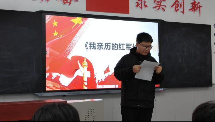 活動伊始,王凱同學為大家誦讀了一篇朱振漢烈士在1948年10月20日寫給母親的信《你辛苦撫育是有價值的》。“你兒子的死,是光榮的,為了全中國的人民解放而死是最有價值的?!庇H筆遺書,情真意切,令人動容的字句充分詮釋了共產(chǎn)黨人的堅定信仰、仁人志士的家國情懷,也把同學們帶回了近百年前那段風雷激蕩的歲月,深刻感悟先烈們對黨、對國家、對民族的大愛與無私。