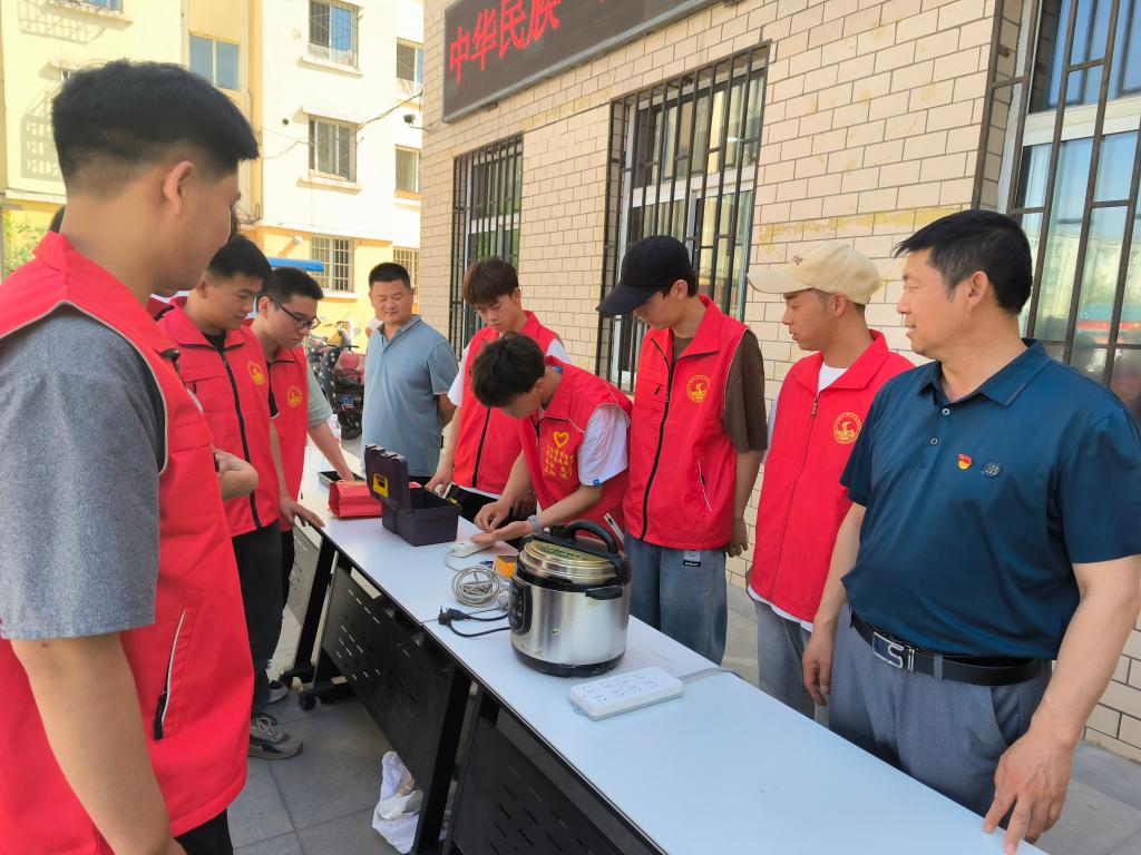 第二項活動,由支部推選的兩名機電專業(yè)學(xué)生,為居民朋友講解使用家電時遇到故障的簡單處理辦法,家電保養(yǎng)基礎(chǔ)知識等。同時,為居民免費檢測了熱水壺、電壓力鍋等小家電的故障問題。