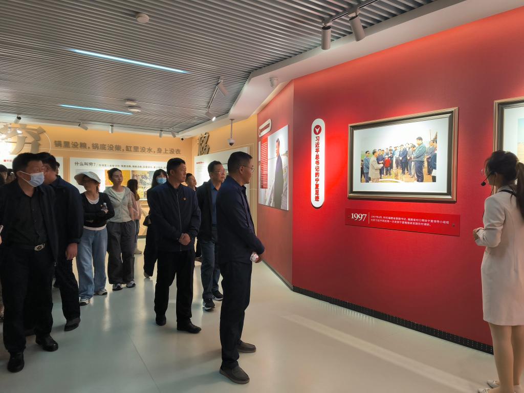 活動當天,全體黨員懷著崇敬的心情,踏入了閩寧鎮(zhèn)這片充滿奮斗與希望的土地。進入閩寧新貌展示中心,大家通過豐富的圖文資料和生動的講解,詳細了解了閩寧鎮(zhèn)從昔日荒涼貧瘠的“干沙灘”到如今繁榮富庶的“金沙灘”的蛻變歷程。黨員們被閩寧鎮(zhèn)人民在黨的領(lǐng)導(dǎo)下,通過不懈奮斗實現(xiàn)脫貧致富的感人故事深深打動,紛紛表示要學(xué)習(xí)他們艱苦奮斗、自強不息的精神。