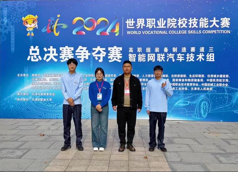 近日,2024年世界職業(yè)院校技能大賽總決賽爭奪賽高職組裝備制造賽道三“智能網(wǎng)聯(lián)汽車技術(shù)”賽項(xiàng)在天津職業(yè)大學(xué)舉行,來自全國各省、自治區(qū)、直轄市的高職院校共59支代表隊共190名參賽選手在為期兩天的賽程中展開激烈角逐,由電氣工程系朱立堃、靳芳老師指導(dǎo),姚宏林、于佳程兩位同學(xué)組成的參賽團(tuán)隊榮獲銅獎。