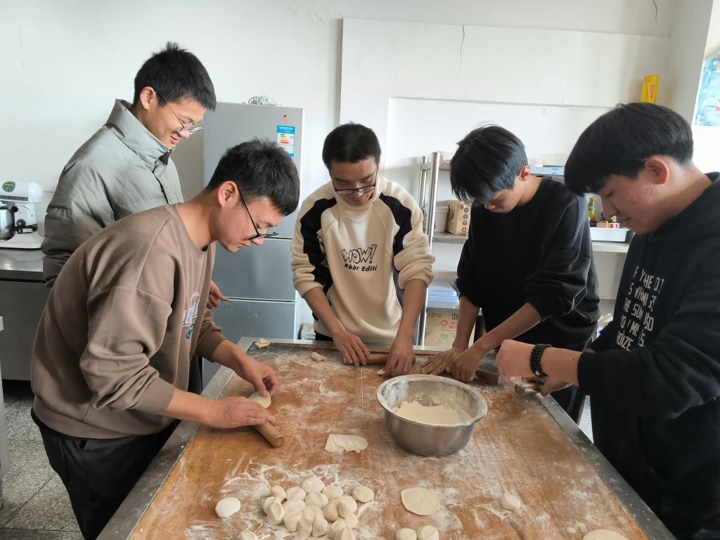 活動現(xiàn)場,全體黨員、教師和周末不能回家的學(xué)生齊聚一堂,分工明確,配合默契。有的負(fù)責(zé)摘韭菜,有的負(fù)責(zé)剁肉餡,有的負(fù)責(zé)揉面,有的負(fù)責(zé)搟皮,每個人都沉浸在歡樂祥和的氛圍中。大家一邊包餃子,一邊交流著工作和生活中的點(diǎn)滴,分享著彼此的經(jīng)驗與感悟。歡聲笑語回蕩在整個空間,讓這個冬日變得格外溫馨。