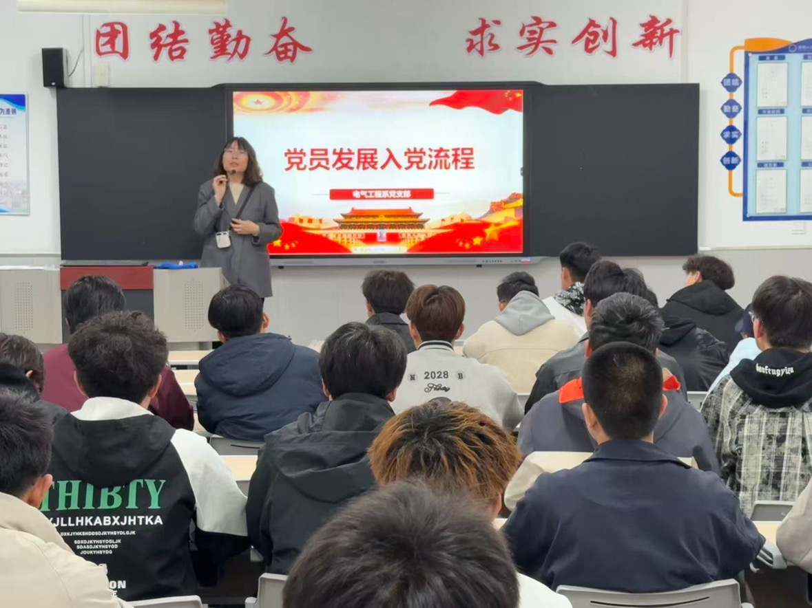 為幫助遞交入黨申請(qǐng)書(shū)的同學(xué)全面掌握黨員發(fā)展全流程,精準(zhǔn)解決入黨申請(qǐng)材料撰寫(xiě)中的常見(jiàn)問(wèn)題,引導(dǎo)青年學(xué)子以嚴(yán)謹(jǐn)態(tài)度、規(guī)范行動(dòng)向黨組織靠攏,3月30日,電氣工程系黨支部舉辦“黨員講黨課”系列活動(dòng)第一講。本次黨課以黨員發(fā)展流程解析與入黨申請(qǐng)書(shū)撰寫(xiě)指導(dǎo)為主題,由電氣工程系黨支部書(shū)記賈曉春主講,系內(nèi)全體遞交入黨申請(qǐng)書(shū)的同學(xué)參加。