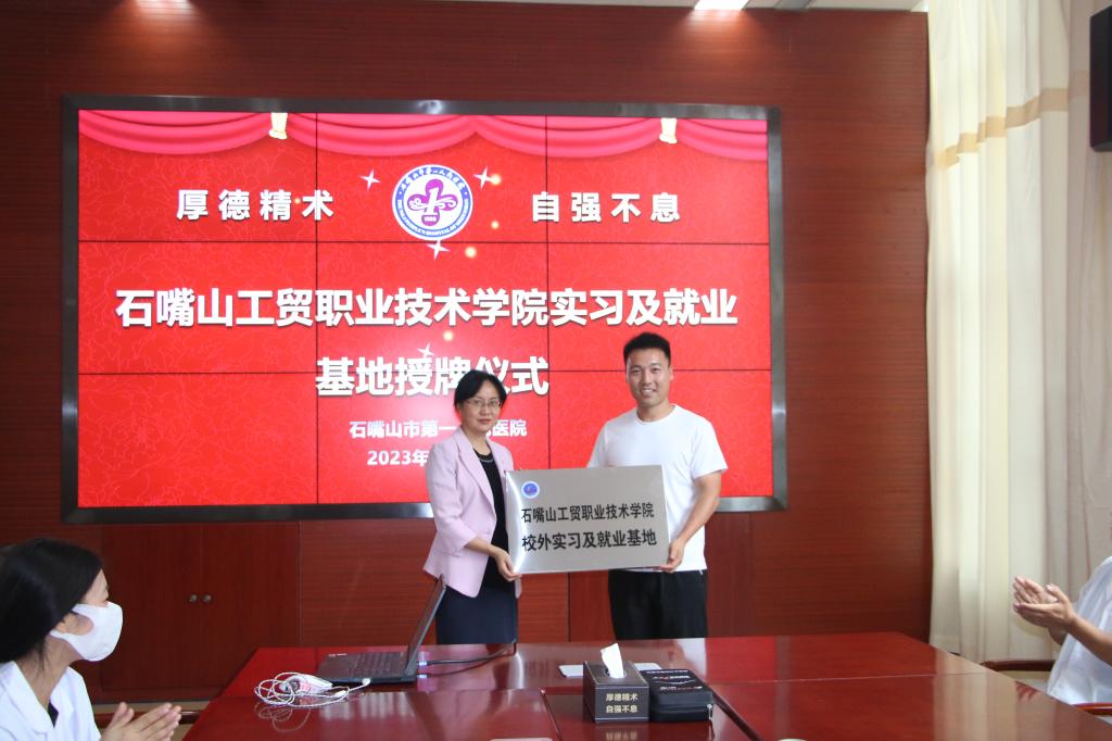 為進(jìn)一步貫徹黨的二十大精神,落實(shí)自治區(qū)黨委和政府關(guān)于開展“就業(yè)創(chuàng)業(yè)促進(jìn)年”活動(dòng)的安排部署,促進(jìn)學(xué)院畢業(yè)生高質(zhì)量就業(yè),7月12日,石嘴山工貿(mào)職業(yè)技術(shù)學(xué)院商貿(mào)管理系社區(qū)康復(fù)專業(yè)與石嘴山市第一人民醫(yī)院實(shí)習(xí)基地合作簽約授牌儀式在石嘴山市第一人民醫(yī)院隆重舉行。石嘴山市第一人民醫(yī)院張靜虹副院長、寇博科長、趙衛(wèi)華主任,石嘴山工貿(mào)職業(yè)技術(shù)學(xué)院商貿(mào)管理系副主任王曉寧帶領(lǐng)社區(qū)康復(fù)專業(yè)部分老師及11名在石嘴山市第一人民醫(yī)院實(shí)習(xí)學(xué)生參加了此次簽約授牌儀式。