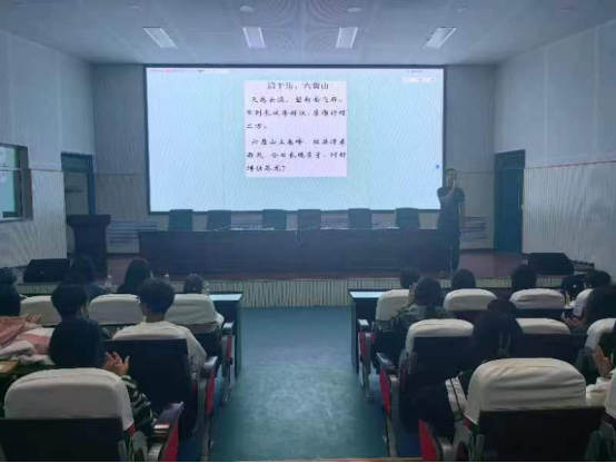 “天高云淡,望斷南飛雁”隨著高昂的音樂聲響起,蓋猛主任朗誦的《清平樂·六盤山》,將同學們帶入了紅軍長征的畫面里。同時為了讓同學們更好的學習到長征精神,蓋猛主任又帶領著全體同學共同演唱《清平樂·六盤山》。