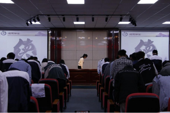 活動(dòng)共分自我反省、唱歌曲、看短片、誦經(jīng)典、學(xué)模范、談感悟、向“德”鞠躬七個(gè)環(huán)節(jié)舉行。信息工程系22級(jí)全體同學(xué)匯聚道德講堂,在靜穆反思中反省個(gè)人言行,在《中華美德歌》中感受體悟傳統(tǒng)美德,在誦經(jīng)典中傳承民族道德智慧,在道德模范故事中學(xué)習(xí)平凡人的奉獻(xiàn)。在談感悟環(huán)節(jié)中,信息學(xué)子感觸頗深:道德非一日形成,個(gè)人道德的形成始于每一個(gè)生活細(xì)節(jié),重在傳承、貴在堅(jiān)持。最后,全體學(xué)生滿懷對(duì)高尚行為品德的追求,向“德”字深深鞠躬。