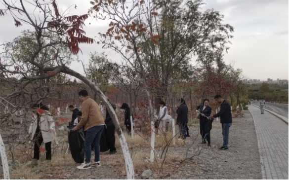 巍巍賀蘭山下,信息工程系全體黨員準(zhǔn)時(shí)在北武當(dāng)生態(tài)公園集結(jié)?;顒?dòng)伊始,大家便投入到拾撿垃圾與垃圾分類的工作中。黨員們一邊交流垃圾分類方法一邊仔細(xì)分辨將垃圾分類收集,以實(shí)際行動(dòng)倡導(dǎo)環(huán)保理念。在山腰處極目眺望,城市籠罩一層輕霾,支部黨員以減少碳排放為話題,交流日常節(jié)能減排經(jīng)驗(yàn),鼓勵(lì)彼此在生活中注重環(huán)保,低碳出行。