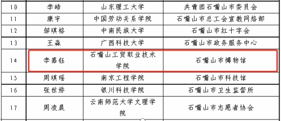 為深入學(xué)習(xí)貫徹習(xí)近平總書記在同團(tuán)中央新一屆領(lǐng)導(dǎo)班子集體談話時(shí)的重要講話精神,引領(lǐng)青年學(xué)子通過返回家鄉(xiāng)參與社會(huì)實(shí)踐,在科技創(chuàng)新、鄉(xiāng)村振興、綠色發(fā)展、社會(huì)服務(wù)、衛(wèi)國戍邊等各領(lǐng)域各方面工作中爭當(dāng)排頭兵和生力軍,學(xué)院嚴(yán)格按照自治區(qū)團(tuán)委、教育廳,寧夏學(xué)聯(lián)、石嘴山市團(tuán)委相關(guān)工作部署,開展了“學(xué)習(xí)新思想、奮進(jìn)新征程”暨2024寒假年全區(qū)大學(xué)生“返家鄉(xiāng)”社會(huì)實(shí)踐活動(dòng)。2月23日,共青團(tuán)石嘴山市委員會(huì)對30名在實(shí)踐過程中表現(xiàn)突出的大學(xué)生提出表揚(yáng),石嘴山工貿(mào)職業(yè)技術(shù)學(xué)院信息工程系2023級大數(shù)據(jù)技術(shù)專業(yè)學(xué)生李嘉鈺獲此榮譽(yù)。