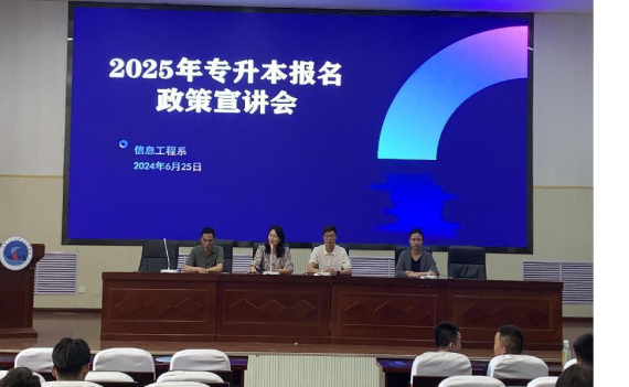 緊接著,信息工程系聯(lián)合學(xué)院招生就業(yè)處召開了2025年專升本報(bào)名政策宣講會(huì)。會(huì)上,招生就業(yè)處副主任楊曉娟對(duì)專升本政策進(jìn)行了全面解讀,詳細(xì)說明了報(bào)名條件、考試科目、錄取標(biāo)準(zhǔn)等關(guān)鍵信息,為學(xué)生提供了一條提升自身學(xué)歷和專業(yè)技能的明確路徑。