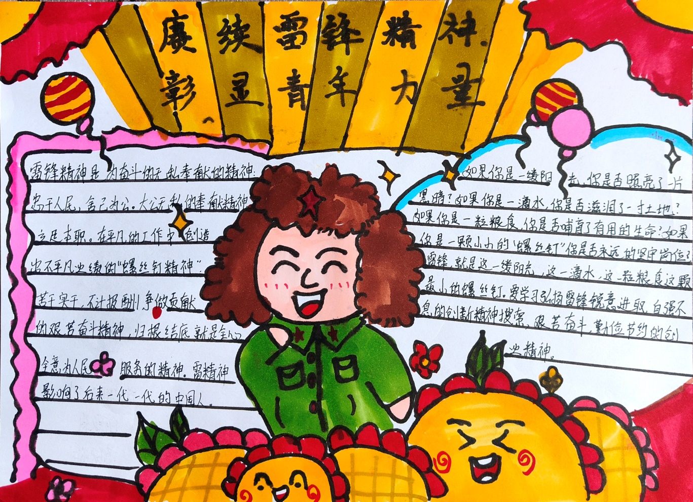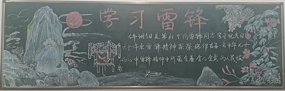 活動中,班級同學(xué)積極參與,精心設(shè)計(jì),充分利用圖文并茂、炫彩新穎的手抄報(bào)、黑板報(bào)這兩塊宣傳陣地,對雷鋒的生平事跡進(jìn)行全方位展現(xiàn),形式多樣、風(fēng)格各異、內(nèi)容健康向上、主題鮮明、各有特色。有的謳歌雷鋒精神、有的宣傳雷鋒的感人事跡、有的收集雷鋒名言錄,多角度詮釋了雷鋒精神的內(nèi)涵,贊揚(yáng)雷鋒的“釘子精神”,充分展示了同學(xué)們對雷鋒精神的感悟和理解,以此激發(fā)同學(xué)們“從我做起,從小事做起”,引導(dǎo)學(xué)生人人學(xué)雷鋒,人人當(dāng)雷鋒。