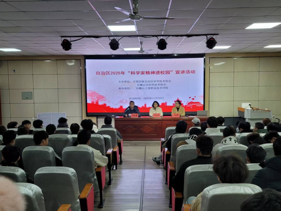 為深入學習貫徹習近平新時代中國特色社會主義思想和黨的二十屆三中、四中全會精神,落實習近平總書記關于弘揚科學家精神的重要指示,厚植青年學習科學文化素養(yǎng),激發(fā)科技報國熱情,11月20日,由寧夏科協(xié)和石嘴山市科協(xié)主辦,石嘴山工貿職業(yè)技術學院承辦的自治區(qū)2025年“科學家精神進校園”宣講活動在新型材料現(xiàn)代產(chǎn)業(yè)學院報告廳成功舉辦。