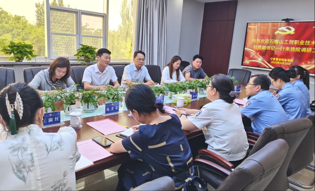 6月14日,石嘴山工貿(mào)職業(yè)技術(shù)學(xué)院黨工委副書記祁勇及馬克思主義學(xué)院教師一行到寧夏工商職業(yè)技術(shù)學(xué)院、寧夏財(cái)經(jīng)職業(yè)技術(shù)學(xué)院、寧夏警官職業(yè)學(xué)院考察學(xué)習(xí),圍繞主題教育抓好學(xué)校思想政治工作、馬克思主義學(xué)院規(guī)范化建設(shè)、思政課教師隊(duì)伍培養(yǎng)、思政課教學(xué)提質(zhì)培優(yōu)、思政類活動開展等方面展開交流。