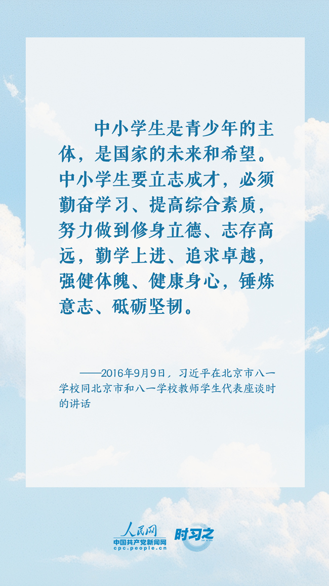 學生是國家的未來和希望。長期以來,習近平總書記始終關心關注莘莘學子的成長。他多次走進校園,回信勉勵各族學生,與他們講信念、論志向、談夢想。開學季,一起重溫總書記的殷殷寄語。