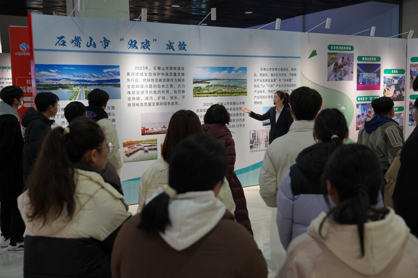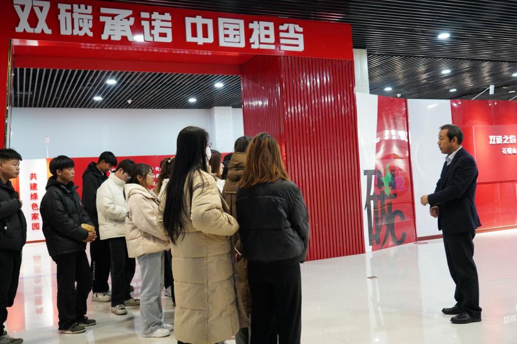 課上,劉超書記圍繞石嘴山經(jīng)濟(jì)發(fā)展歷經(jīng)的黑色困局、紅色覺(jué)醒、綠色行動(dòng)、頂層設(shè)計(jì)、實(shí)施方案、綠色發(fā)展和案例展示共七個(gè)方面引導(dǎo)同學(xué)們通過(guò)聽(tīng)取講解、觀看圖文、互動(dòng)展品等多種形式進(jìn)行學(xué)習(xí),使同學(xué)們了解我國(guó)為應(yīng)對(duì)全球氣候變化所承擔(dān)的責(zé)任,為實(shí)現(xiàn)“碳達(dá)峰、碳中和”所編制的行動(dòng)方案,以及寧夏在“雙碳行動(dòng)”中提出打造“六新六特六優(yōu)”產(chǎn)業(yè),優(yōu)化產(chǎn)業(yè)結(jié)構(gòu)和布局,推動(dòng)產(chǎn)業(yè)向高端化、綠色化、智能化、融合化方向發(fā)展所實(shí)施的計(jì)劃和取得的成效。