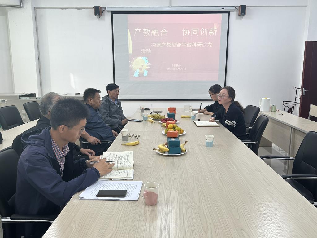 金秋時節(jié),丹桂飄香。為進一步營造學(xué)??蒲蟹諊岣邔W(xué)院人才培養(yǎng)質(zhì)量,加強專業(yè)建設(shè)走內(nèi)涵式發(fā)展,辦出學(xué)校特色,補齊社會服務(wù)短板,助力產(chǎn)教融合協(xié)調(diào)發(fā)展。9月27日下午,科研處組織新材料產(chǎn)教融合協(xié)同研發(fā)中心、新能源新材料利用技術(shù)研發(fā)工作室 、智能制造技術(shù)產(chǎn)教研協(xié)同創(chuàng)新中心、習(xí)近平新時代中國特色社會主義思想研究室、電子商務(wù)研究中心五個平臺負責(zé)人在中心樓A402開展產(chǎn)教融合科研沙龍活動。