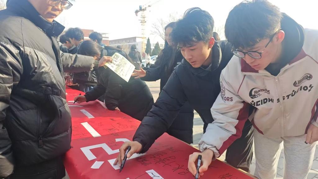 12月9日,石嘴山工貿(mào)職業(yè)技術(shù)學(xué)院機(jī)械工程系的志愿者們?cè)谛@里,開(kāi)展主題簽名活動(dòng),用紙和筆傳承著“一二·九”運(yùn)動(dòng)的愛(ài)國(guó)主義精神。