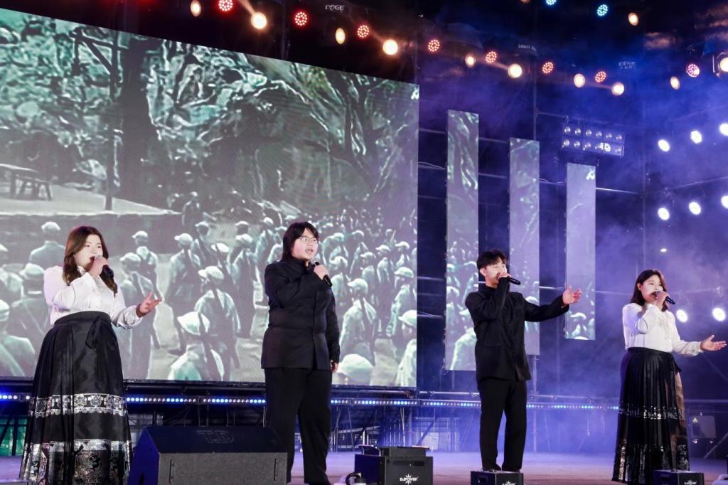 第一篇章·青青子衿,志懷家國。晚會(huì)以舞蹈《奔向青春》拉開序幕,商貿(mào)管理系的同學(xué)們用動(dòng)感的舞姿展現(xiàn)了青春的活力晚會(huì)以舞蹈《奔向青春》拉開序幕,商貿(mào)管理系的同學(xué)們用動(dòng)感的舞姿展現(xiàn)了青春的活力與激情。緊接著,中華經(jīng)典誦讀社帶來的情景朗誦《紅杜鵑》,以深情的語調(diào)訴說著對(duì)祖國的熱愛與敬仰。由學(xué)院合唱團(tuán)帶來的合唱《山河》帶領(lǐng)全體師生共同回溯往昔崢嶸歲月,感受先輩們以信仰為帆、以擔(dān)當(dāng)為槳的逐夢(mèng)征程,不僅展現(xiàn)了學(xué)子們的多才多藝,更傳遞出了他們對(duì)家國情懷的深刻理解與傳承。由大學(xué)城派出所帶來的歌曲《我們的歌(反詐版)》,以輕快的歌曲串燒引導(dǎo)全體師生提升反詐意識(shí),保護(hù)自身安全。