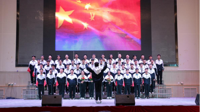 一支支參賽隊伍朝氣蓬勃、意氣風發(fā),一首首經典歌曲振奮人心、鏗鏘有力,同學們用激揚的歌聲,緬懷英勇志士的豐功偉績,用跳躍的音符,講述祖國的歷史變遷,用青春的旋律,抒發(fā)赤誠的報國熱情,精彩的演出和熱烈的氣氛感染著在場的每一個人。