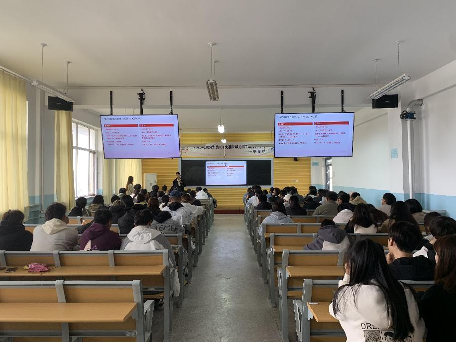 為提升大數(shù)據(jù)專業(yè)等信息技術類學生的專業(yè)認知,搭建了解專業(yè)前沿的平臺,激勵學生提高自身的技術實踐能力和創(chuàng)新思維,12月上旬,信息工程系開展華為ICT大賽宣講會,120余名學生參加宣講會。