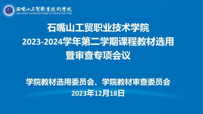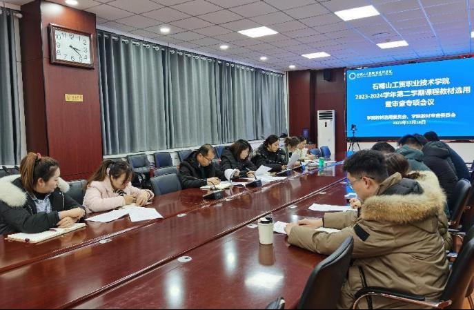 為進(jìn)一步規(guī)范教材選用,加強(qiáng)專(zhuān)業(yè)建設(shè),深化課堂體系和教學(xué)內(nèi)容改革,12月18日下午,學(xué)院召開(kāi)2023-2024學(xué)年第二學(xué)期課程教材選用暨審查專(zhuān)項(xiàng)會(huì)議。學(xué)院教材審查委員會(huì)主任、學(xué)院黨委副書(shū)記寇立紅出席,會(huì)議由學(xué)院教材選用委員會(huì)主任、學(xué)院副院長(zhǎng)侯蓉主持,教務(wù)處、科研處、紀(jì)檢監(jiān)察處、黨建工作處、馬克思主義學(xué)院負(fù)責(zé)人、各院系教材工作組負(fù)責(zé)人參加此次會(huì)議。