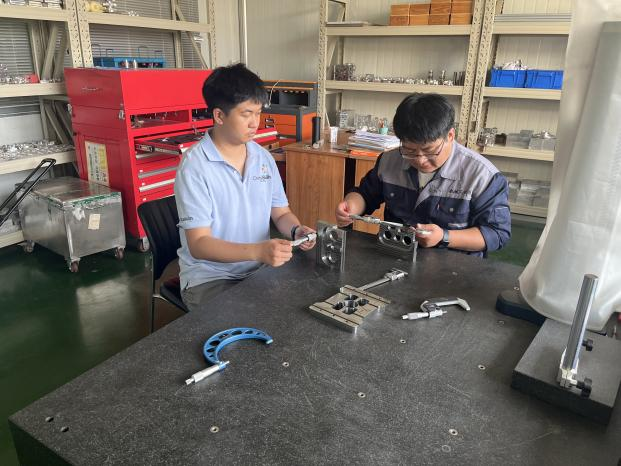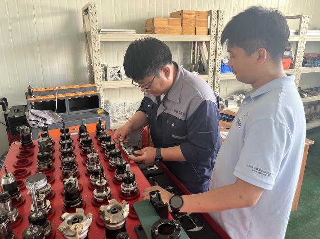 數(shù)控機床裝調(diào)與技術(shù)改造、現(xiàn)代加工技術(shù)賽項由數(shù)控團隊的趙永彪、賀建平指導(dǎo)訓(xùn)練。兩位指導(dǎo)老師通過精心制定科學(xué)、有效、操作性強的集訓(xùn)方案,明確備賽計劃和訓(xùn)練安排,同時給予學(xué)生心理疏導(dǎo)和關(guān)心關(guān)懷,增強集訓(xùn)備賽效果。“現(xiàn)代加工技術(shù)這個賽項是師生同賽,由我和2名學(xué)生組成一個團隊,共同完成綜合件的加工?!秉h員教師趙永彪介紹道。