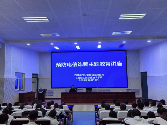 為了提高廣大師生對電信詐騙的防范意識,筑牢校園安全防線,10月17日,石嘴山工貿(mào)職業(yè)技術(shù)學院邀請大武口區(qū)公安分局、高校警務中心干警馬潤露為200余名師生代表開展預防電信詐騙主題講座。
