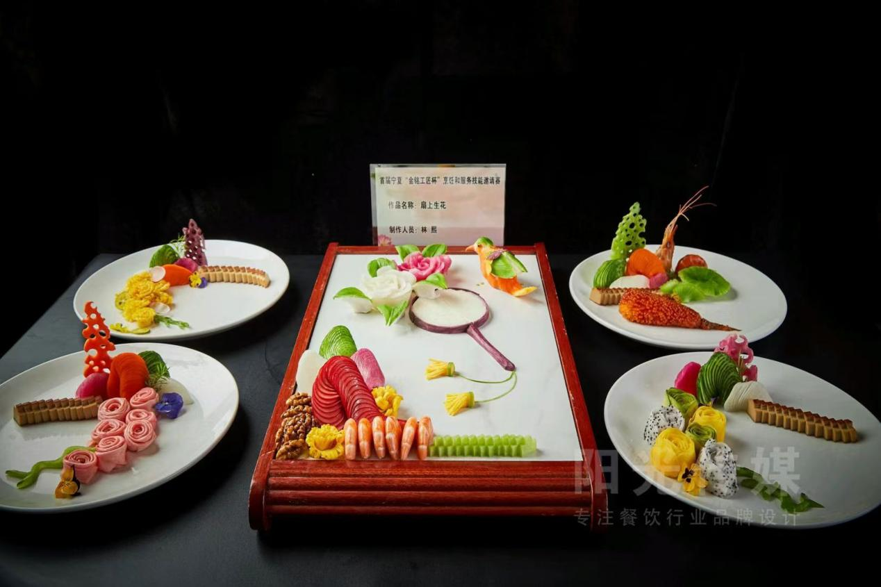 學(xué)院師生代表隊(duì)共計(jì)獲得三金兩銀的好成績(jī),其中李志軒老師中式面點(diǎn)作品《籽籽同心》獲金獎(jiǎng),李芃、林熙兩位老師中式冷拼作品《鯉魚戲荷》《扇上生花》獲金獎(jiǎng),李芃老師指導(dǎo)的學(xué)生邱桂平、謝宏強(qiáng)中式冷拼作品《鳥語繁花》《繁花似錦》獲銀獎(jiǎng)。
