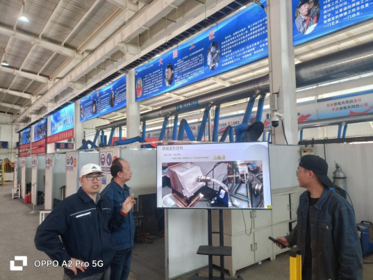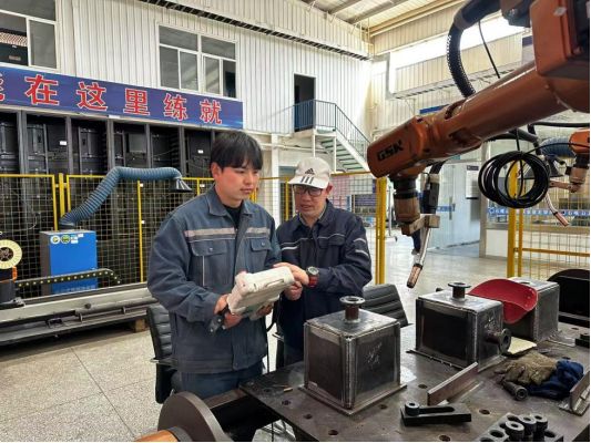 學(xué)生正在設(shè)計箱式帶管板法蘭壓力容器,由兩位學(xué)生操作兩臺焊接機器人協(xié)同完成壓力容器所有包角和法蘭的焊接工作,該設(shè)計突出智能化和協(xié)同化優(yōu)勢。同時,為出色完成項目匯報環(huán)節(jié),通過串詞和項目介紹訓(xùn)練,選手能夠在比賽中更加流暢和自信地表現(xiàn)自我。