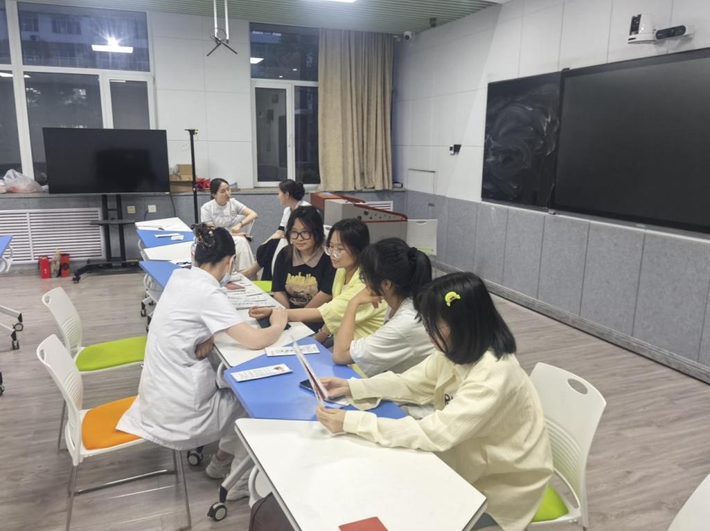 活動現(xiàn)場,石嘴山市第二人民醫(yī)院南丁格爾志愿小分隊以“理論+實踐”的形式為師生送上健康“大禮包”。神經(jīng)內(nèi)科專家通過腦卒中發(fā)病年輕化的典型案例,剖析了熬夜、高鹽飲食等不良習(xí)慣的健康風(fēng)險,深入淺出地講解了腦卒中的早期識別與急救措施。營養(yǎng)科團(tuán)隊結(jié)合學(xué)生作息特點,通過膳食金字塔模型,指導(dǎo)學(xué)生如何搭配三餐、控制糖油攝入,規(guī)避“隱形肥胖”風(fēng)險。中醫(yī)義診診療區(qū)更是人氣高漲、排起長隊,中醫(yī)醫(yī)師團(tuán)隊為師生一對一號脈問診,針對久坐、用眼過度等學(xué)生常見健康問題,提供針灸、推拿及中藥茶飲方等個性化調(diào)理建議,引導(dǎo)學(xué)生將養(yǎng)生智慧融入日常學(xué)習(xí)生活。