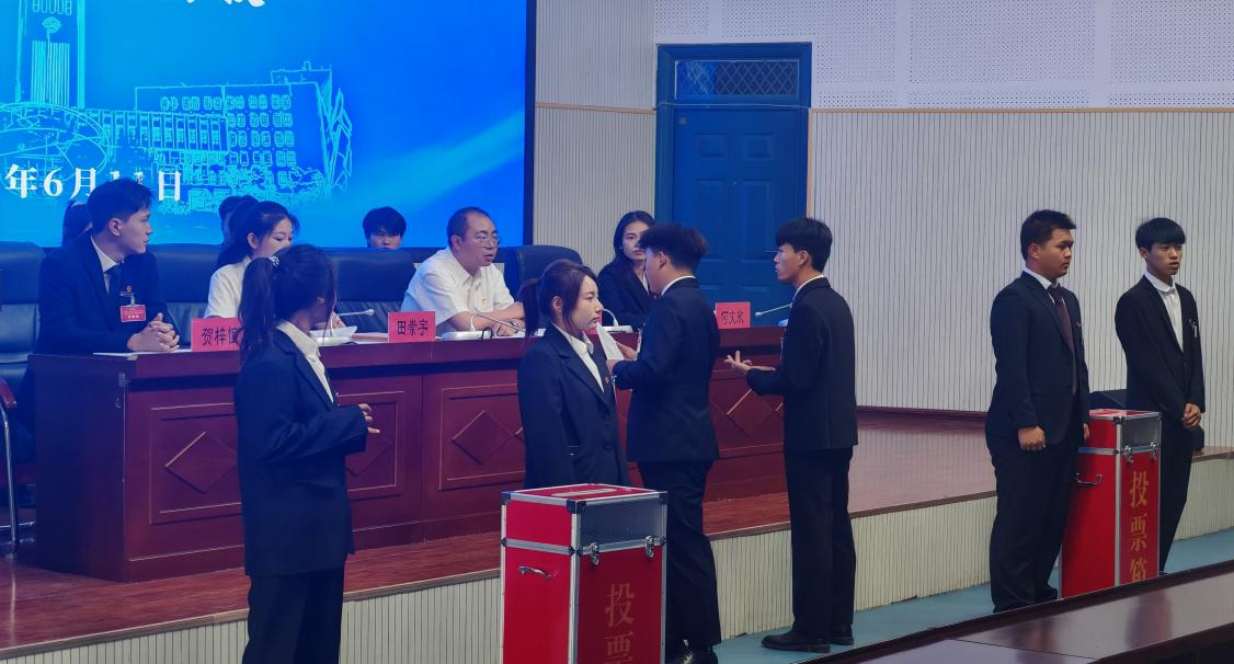 第二次全體會議上,代表們審議通過了工作報(bào)告決議、章程修訂案等文件,并以無記名投票、差額選舉的方式,從9名候選人中選舉產(chǎn)生7名第四屆學(xué)生會委員會委員。隨后召開的委員會第一次會議中,選舉產(chǎn)生3名主席團(tuán)成員(含執(zhí)行主席1名),新當(dāng)選代表發(fā)表表態(tài)發(fā)言,承諾將以務(wù)實(shí)作風(fēng)服務(wù)同學(xué)、推動工作。