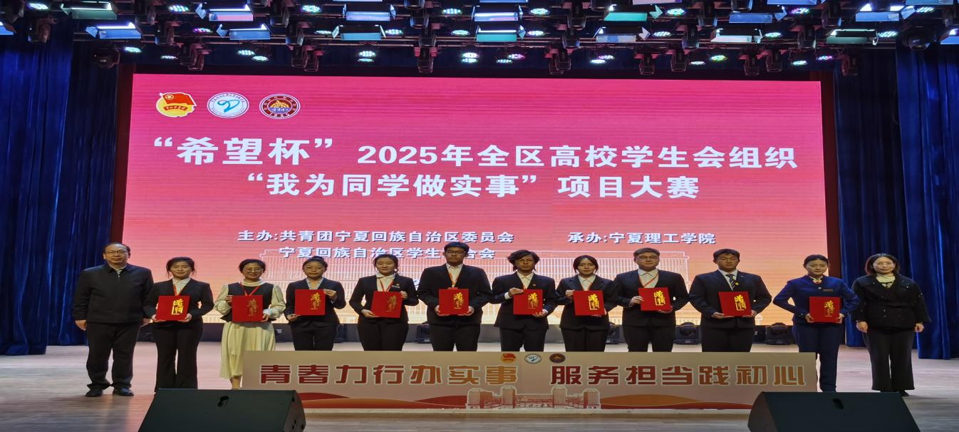 11月28日,由共青團(tuán)寧夏回族自治區(qū)委員會、寧夏回族自治區(qū)學(xué)生聯(lián)合會主辦,寧夏理工學(xué)院承辦的“希望杯”2025年全區(qū)高校學(xué)生會組織“我為同學(xué)做實事”項目大賽圓滿落幕。石嘴山工貿(mào)職業(yè)技術(shù)學(xué)院團(tuán)委精心組織、擇優(yōu)推選,三支參加決賽的項目憑借扎實的服務(wù)成效、創(chuàng)新的實施思路,在全區(qū)20所高校58個參賽項目中脫穎而出,斬獲多項榮譽(yù)。