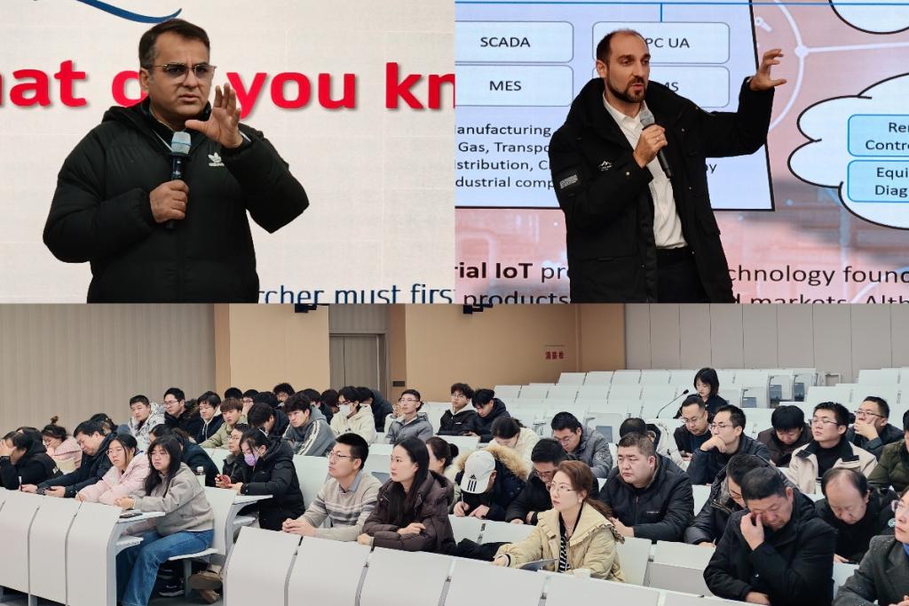 在隨后的專題講座環(huán)節(jié),優(yōu)瑞博士以“智能制造技術(shù)應(yīng)用”為主題,系統(tǒng)介紹了智能制造的發(fā)展趨勢(shì)、技術(shù)框架及工業(yè)應(yīng)用場(chǎng)景,結(jié)合自身在工業(yè)自動(dòng)化等領(lǐng)域的研發(fā)經(jīng)驗(yàn),為師生呈現(xiàn)了一場(chǎng)技術(shù)前沿的視聽盛宴。諾曼博士則圍繞“研究概念化的四個(gè)步驟”,深入剖析了學(xué)術(shù)研究的邏輯構(gòu)建與方法路徑,激發(fā)了師生的科研思維與創(chuàng)新意識(shí)。