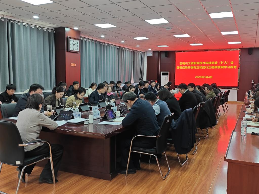 3月4日,石嘴山工貿職業(yè)技術學院召開黨委(擴大)會議,全面貫徹落實黨中央、自治區(qū)及上級有關工作部署和通知要求,部署啟動學院樹立和踐行正確政績觀學習教育各項工作,進一步統(tǒng)一思想、凝聚共識,切實把正確政績觀融入學院改革發(fā)展各方面、貫穿履職盡責全過程。學院黨委書記寧曉娟主持會議并作動員講話。